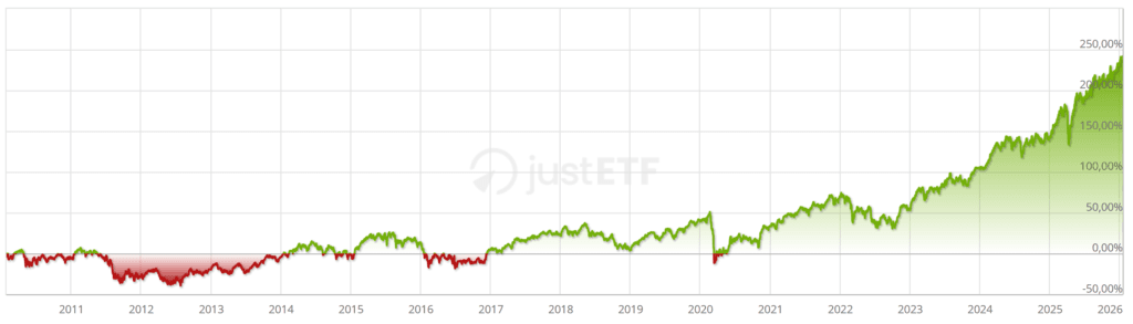 Come puoi vedere, in questo caso si parla di performance intorno al 300% in poco più di 10 anni. Quindi se avessimo investito un’ipotetico milione avremmo ottenuto circa 4 milioni.